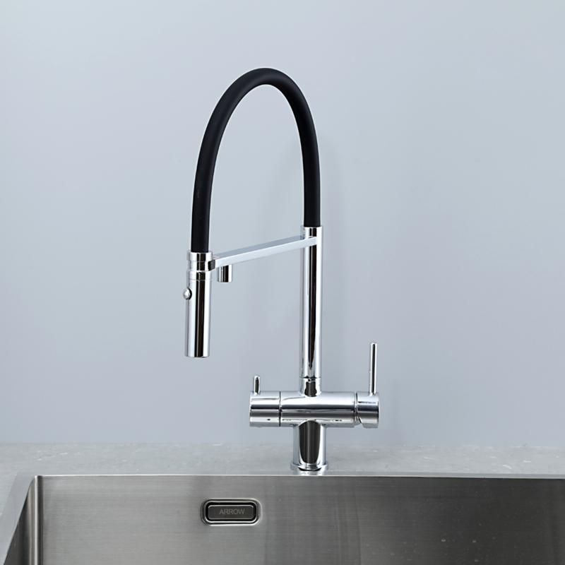 Смеситель для кухни Gappo G4397-80 с подключением фильтра питьевой воды и гибким изливом хром/чёрный купить