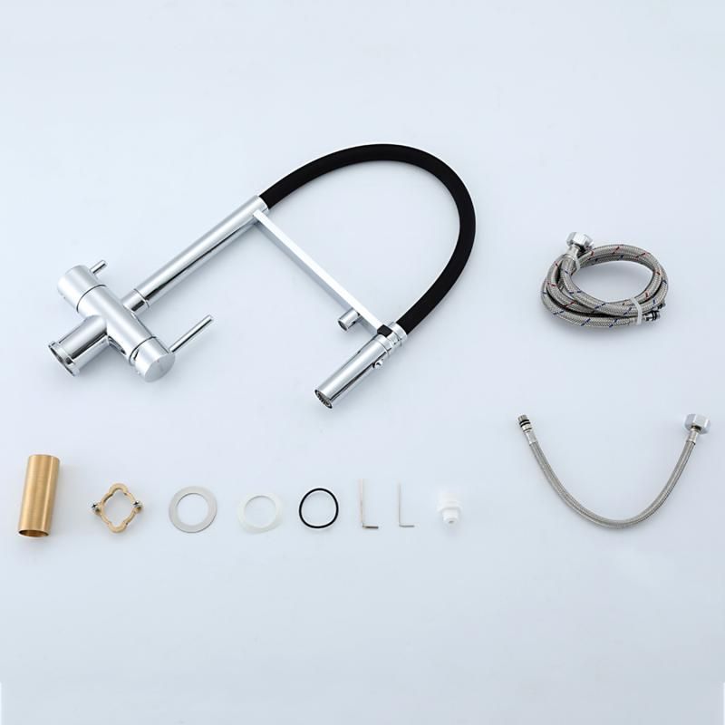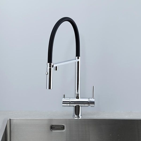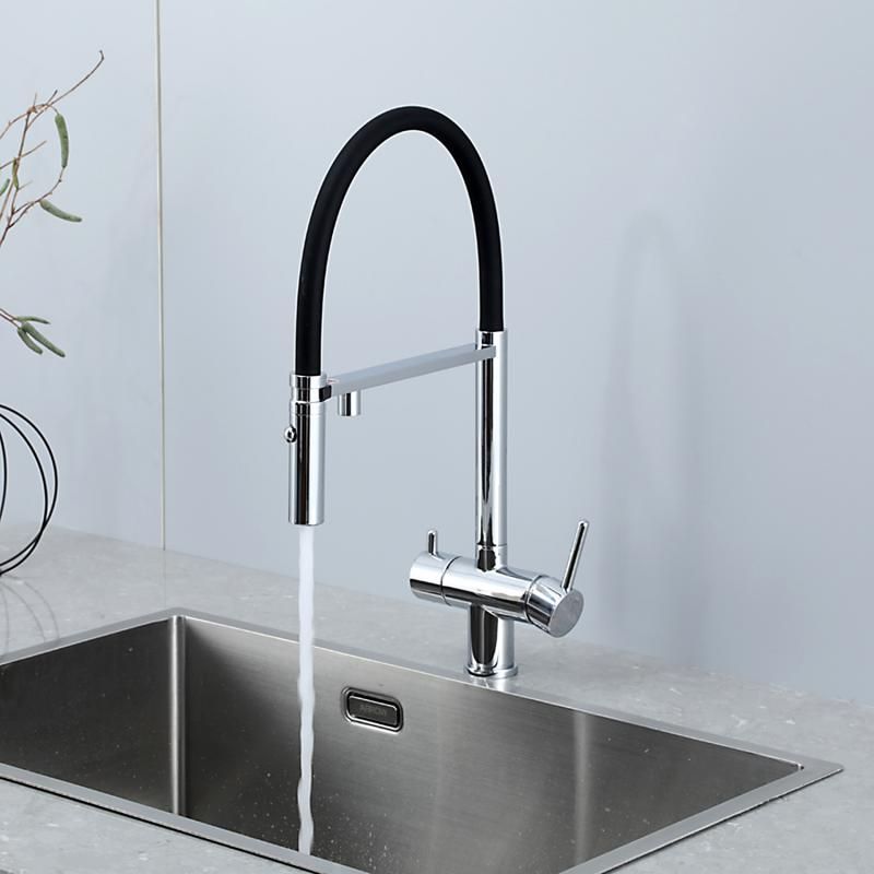 Смеситель для кухни Gappo G4397-80 с подключением фильтра питьевой воды и гибким изливом хром/чёрный
