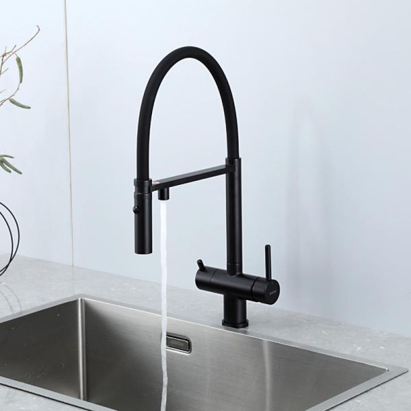 Смеситель для кухни Gappo G4397-86 с подключением фильтра питьевой воды и гибким изливом чёрный
