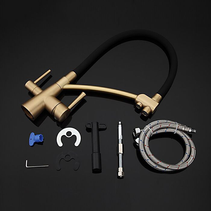Смеситель для кухонной мойки Gappo G4398-1 с подключением фильтра питьевой воды - стильная и практичная однорычажная модель с гибким изливом, отличается наивысшей функциональностью и удобством пользования в быту. Смеситель легок в установке, не требуется сверления дополнительных отверстий под фильтр. Модель имеет компактный рычажок для подачи воды из-под фильтра, а второй рычаг отвечает за регулировку потока. Однорычажное управление обеспечивает плавную настройку температуры и регулировку напора воды. Цвет - бронза.