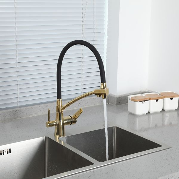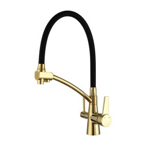 Смеситель для кухни Gappo G4398-13 с фильтром под питьевую воду золотой сатин/чёрный