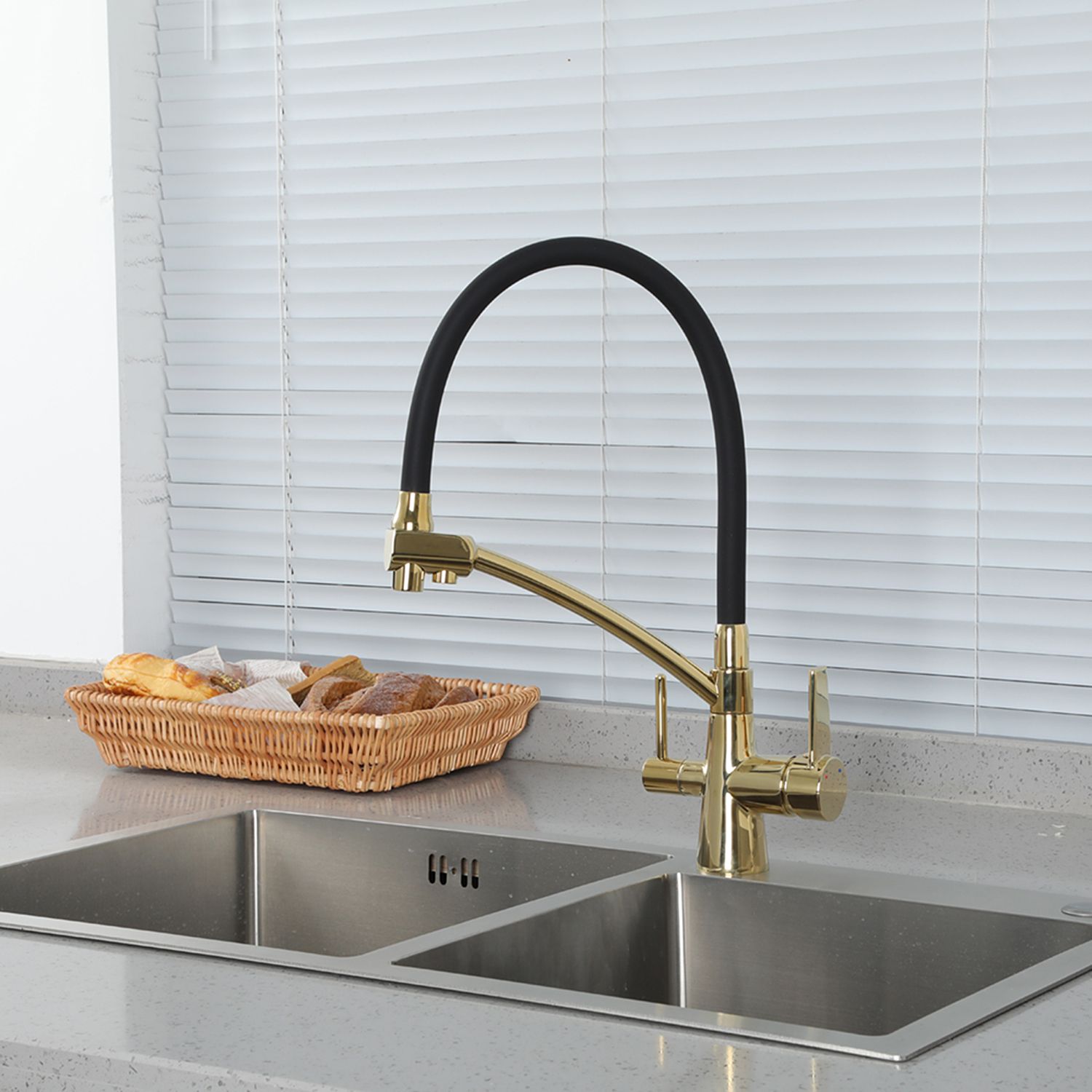 Смеситель для кухни Gappo G4398-13 с фильтром под питьевую воду золотой сатин/чёрный купить