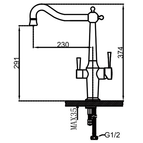 Cмеситель для кухонной мойки Gappo G4398-14 с подключением фильтра питьевой воды - однорычажный смеситель из латуни с хромированным покрытием и высоким поворотным изливом. Смеситель подключается к системе очистки воды.