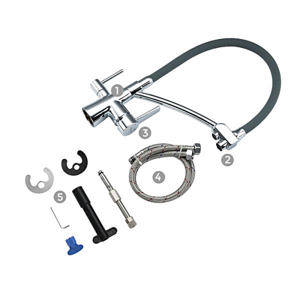 Cмеситель для кухонной мойки Gappo G4398-17 с подключением фильтра питьевой воды - однорычажный смеситель из латуни с хромированным покрытием и гибким изливом из силикона. Излив фиксируется в держателе, в котором расположен водовод для фильтрованной воды, и легко вынимается из него при необходимости. Смеситель подключается к системе очистки воды.