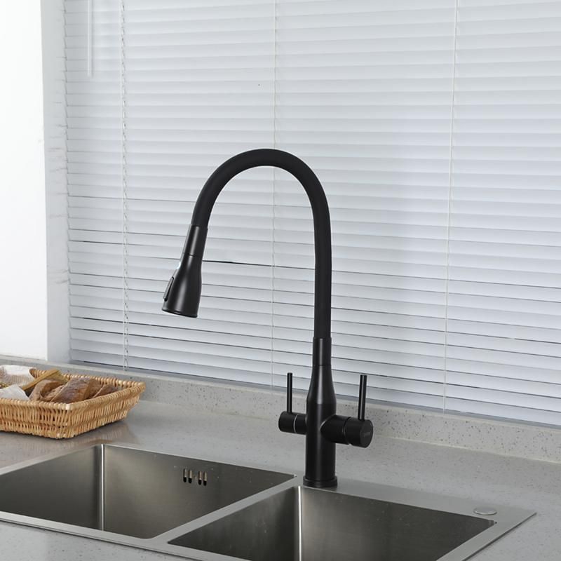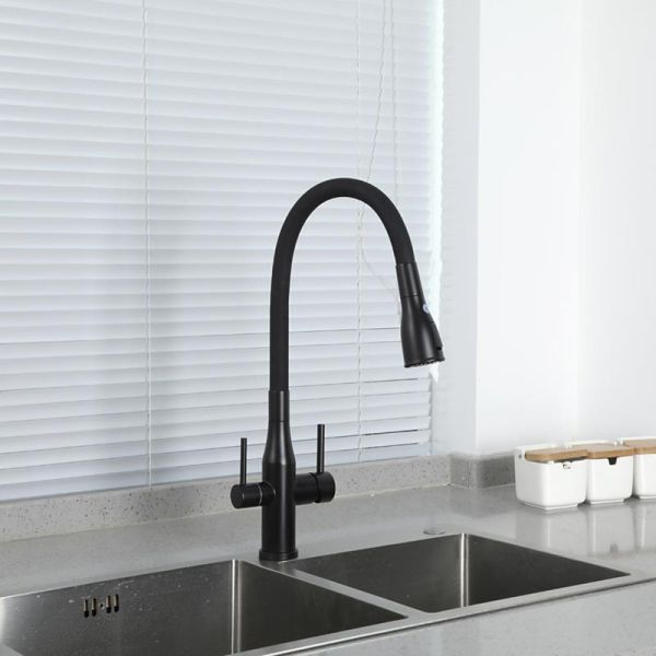 Смеситель для кухни Gappo G4399-66 с гибким изливом и подключением фильтра питьевой воды чёрный