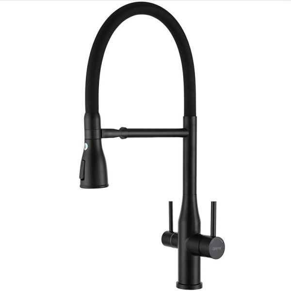 Смеситель для кухни Gappo G4399-76 с гибким изливом и подключением фильтра питьевой воды чёрный купить