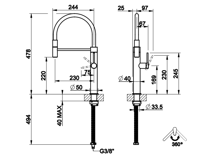 Смеситель Gessi 316 предназначен для тех, кто ищет не только эстетический, но и функциональный элемент для своей кухни. Его профессиональные характеристики и долговечность делают его отличным выбором для интенсивного использования, а элегантный внешний вид подчеркнет утонченность любого современного интерьера.