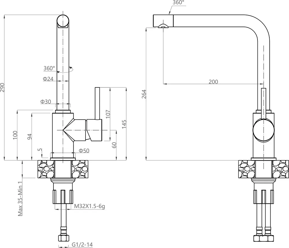 • Высота смесителя: