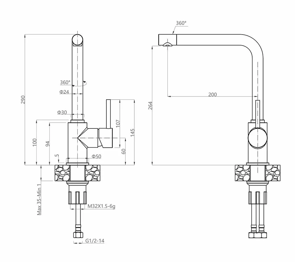 • Высота смесителя: