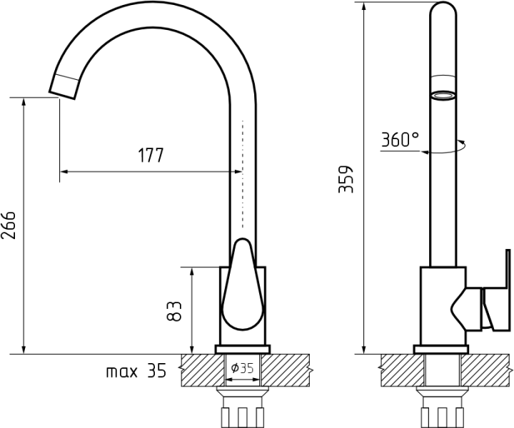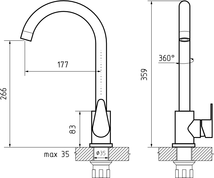 Запорный механизм: керамический картридж Ø 35 мм