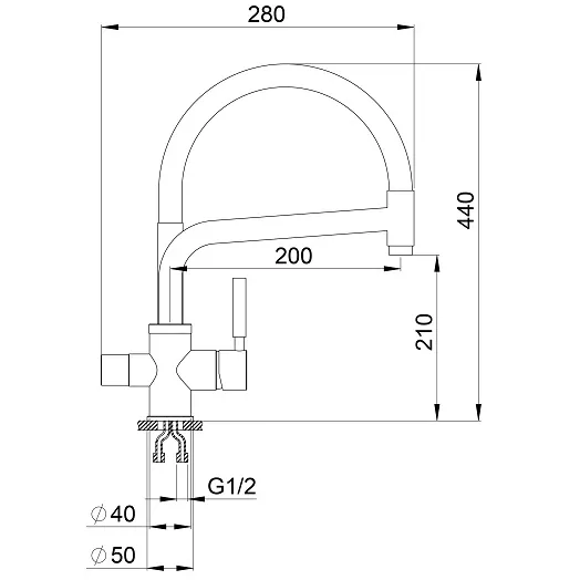 Смеситель для кухни. Цвет-турмалин. В комплект поставки входит: смеситель, гибкая подводка, комплект креплений, переходник для подключения фильтра с питьевой водой