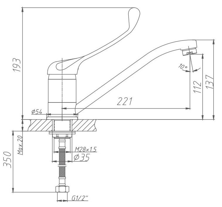 Смеситель для кухни бренда Haiba с хирургической ручкой.Изготовлен из латуни.Картридж 40 мм.Укомплектован аэратором.Гибкая подводка 40 см.С поворотным изливом.