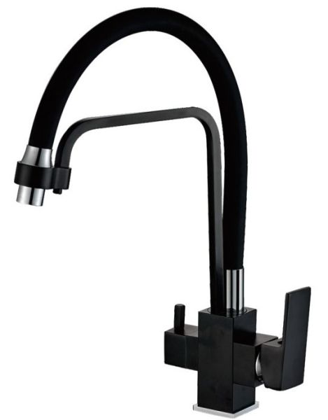 Смеситель для кухни Haiba HB76857 с подключением фильтра питьевой воды чёрный матовый
