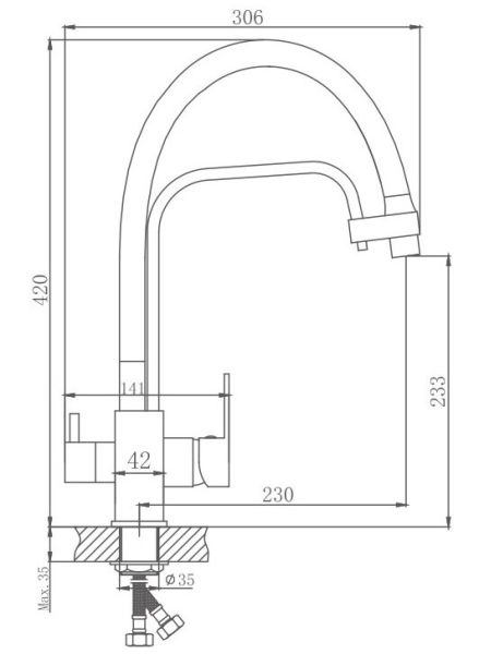 • Высота смесителя: