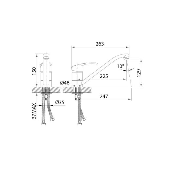 • Высота смесителя: