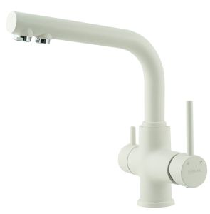 Модель оснащена двумя изливами для питьевой и проточной воды. На корпусе две рукоятки. Управление фильтрованной водой, производиться поворотом ручки с левой стороны в вертикальной плоскости на 90 градусов.