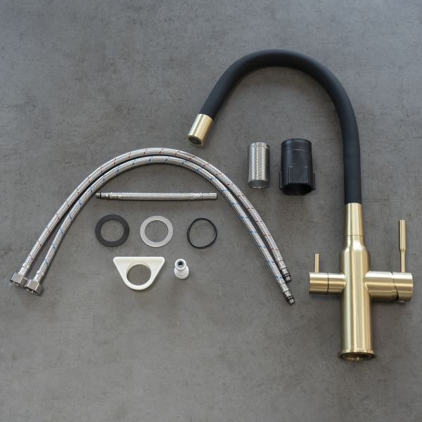 Смеситель для кухни Lemark Expert LM5083LGN-Black с подключением к фильтру с питьевой водой чёрный/золото