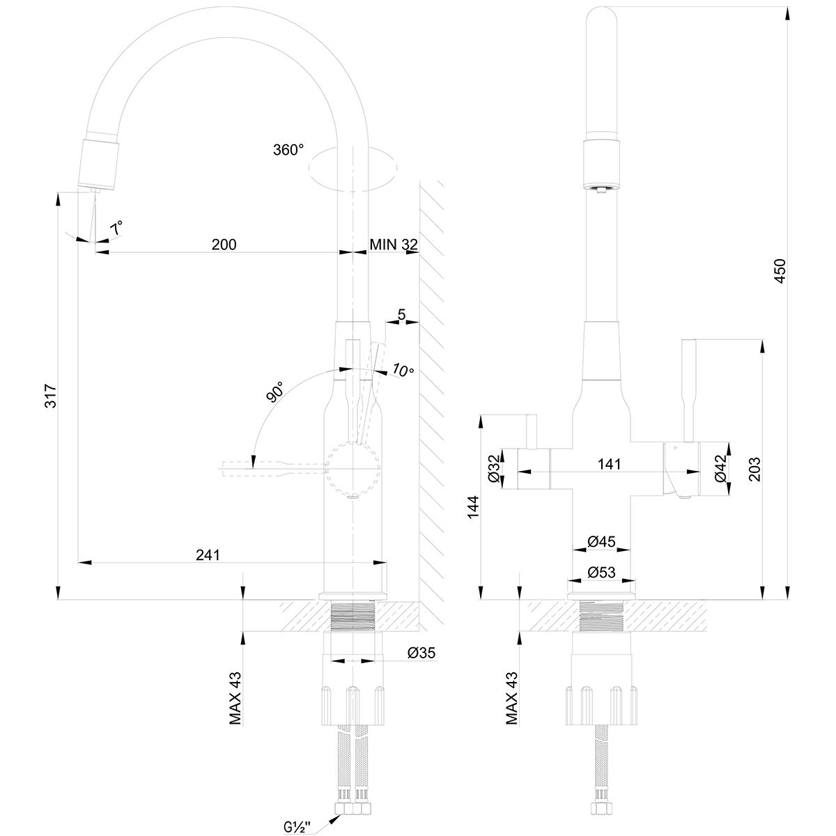 Высота смесителя:45