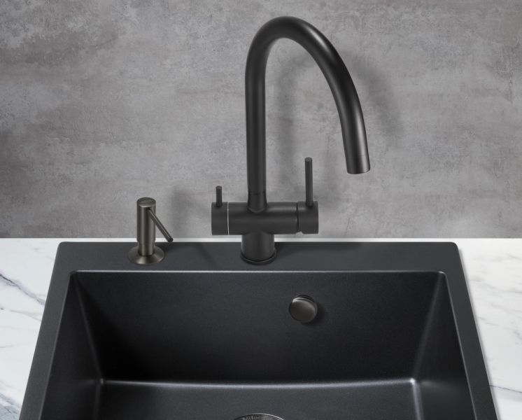 Смеситель для кухни Milacio Ultra MCU.554.TB под фильтр с краном для питьевой воды Total Black