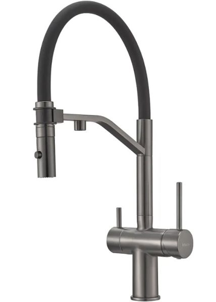 Смеситель для кухни Milacio Ultra MCU.557.GM с подключением к фильтру и гибким изливом воронёная сталь купить