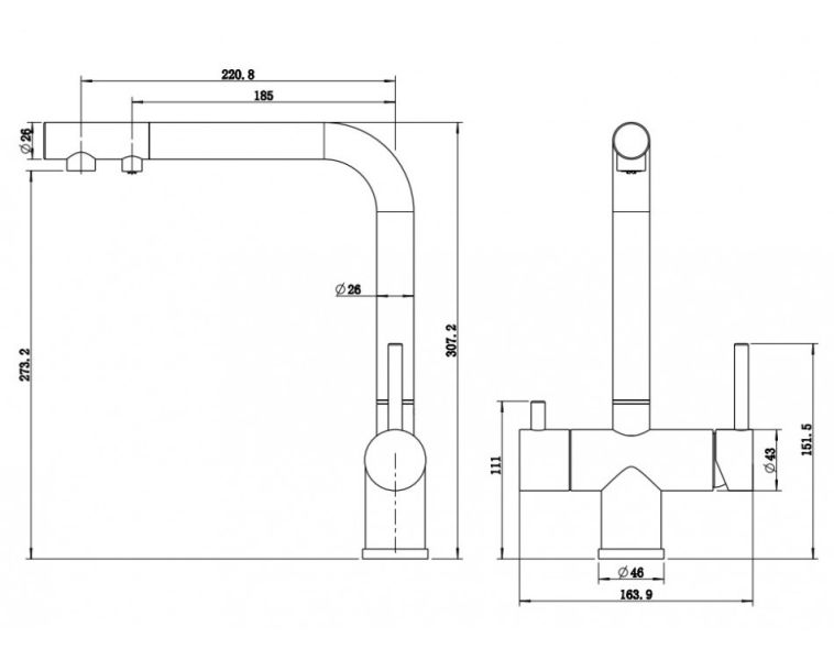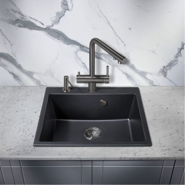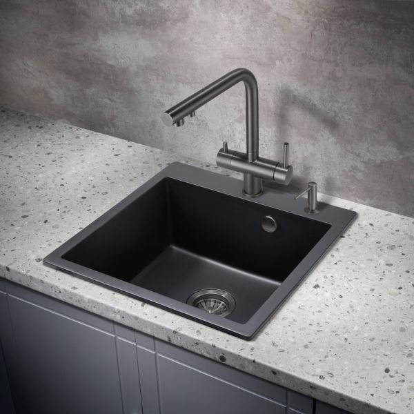 Смеситель для кухни Milacio Ultra MCU.559.GM под фильтр с краном для питьевой воды воронёная сталь