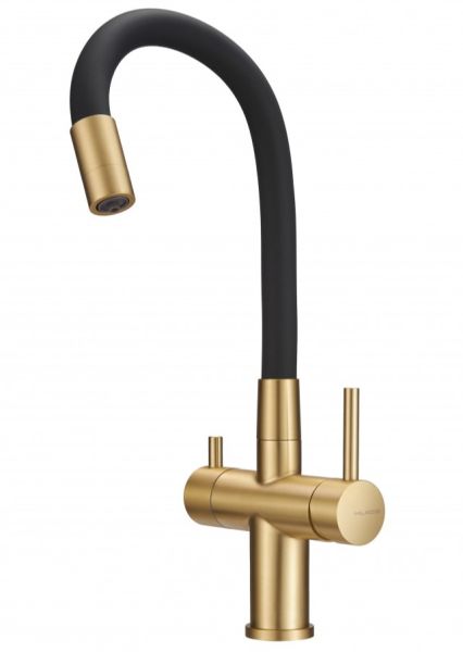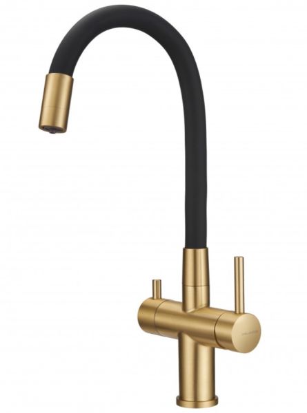 Смеситель для кухни Milacio Ultra MCU.560.GDB под фильтр с краном для питьевой воды и гибким изливом золото/чёрный