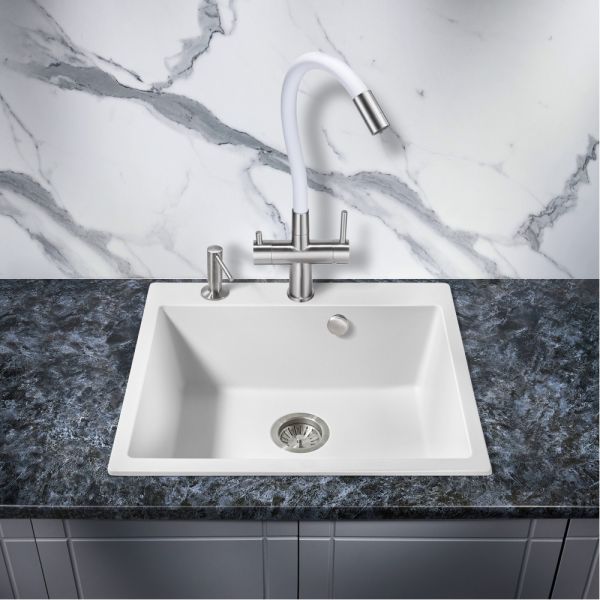Смеситель для кухонной мойки Milacio Ultra (MCU.560.SSW) изготовлен из нержавеющей стали, имеет подключение для фильтра, а самое главно имеет гибкий излив белого цвета с возможностью фиксации в любом положении — это стильное и высокофункциональное решение, которое выгодно подчеркнет все достоинства вашей кухни.