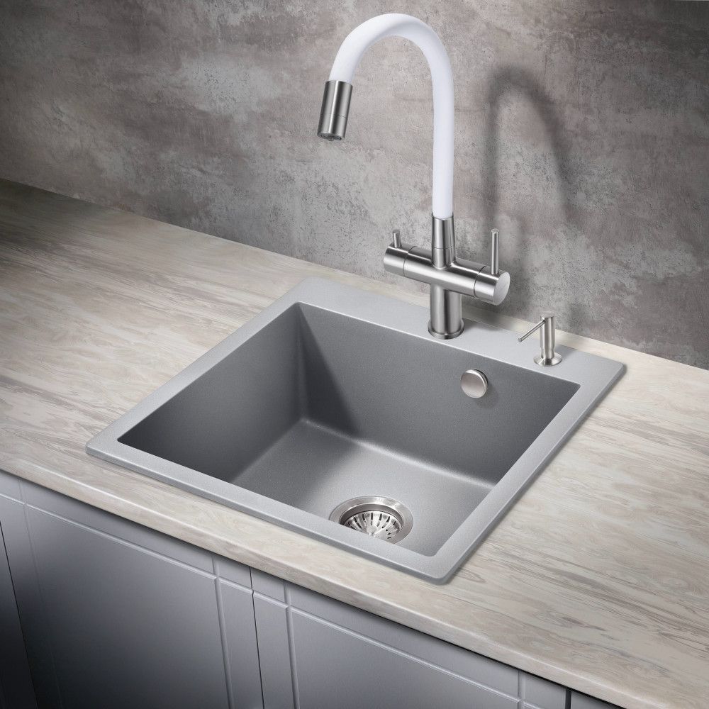 Модель выполнена в цвете нержавеющей стали и имеет изящный излив белого цвета, благодаря чему станет яркой, привлекающей внимание деталью на кухне и никого не оставит равнодушным.