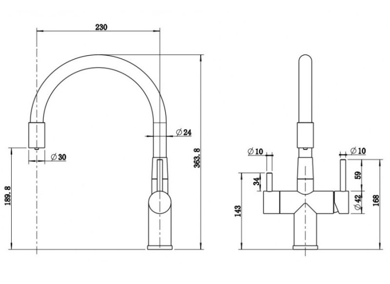 2. Возможность подключения фильтра обеспечивает легкий доступ к чистой питьевой воде и избавляет от необходимости установки дополнительного крана, сохраняя цельность и эстетику пространства. Для подачи фильтрованной воды предусмотрен отдельный рычаг регулировки.