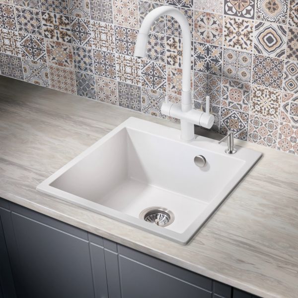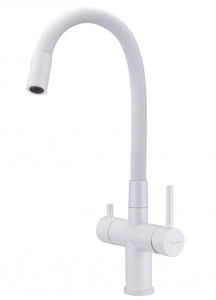 Модель выполнена в белом цвете и имеет изящный излив белого цвета, благодаря чему станет яркой, привлекающей внимание деталью на кухне и никого не оставит равнодушным.