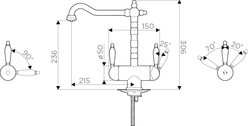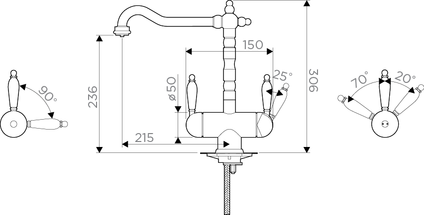 • Высота смесителя: