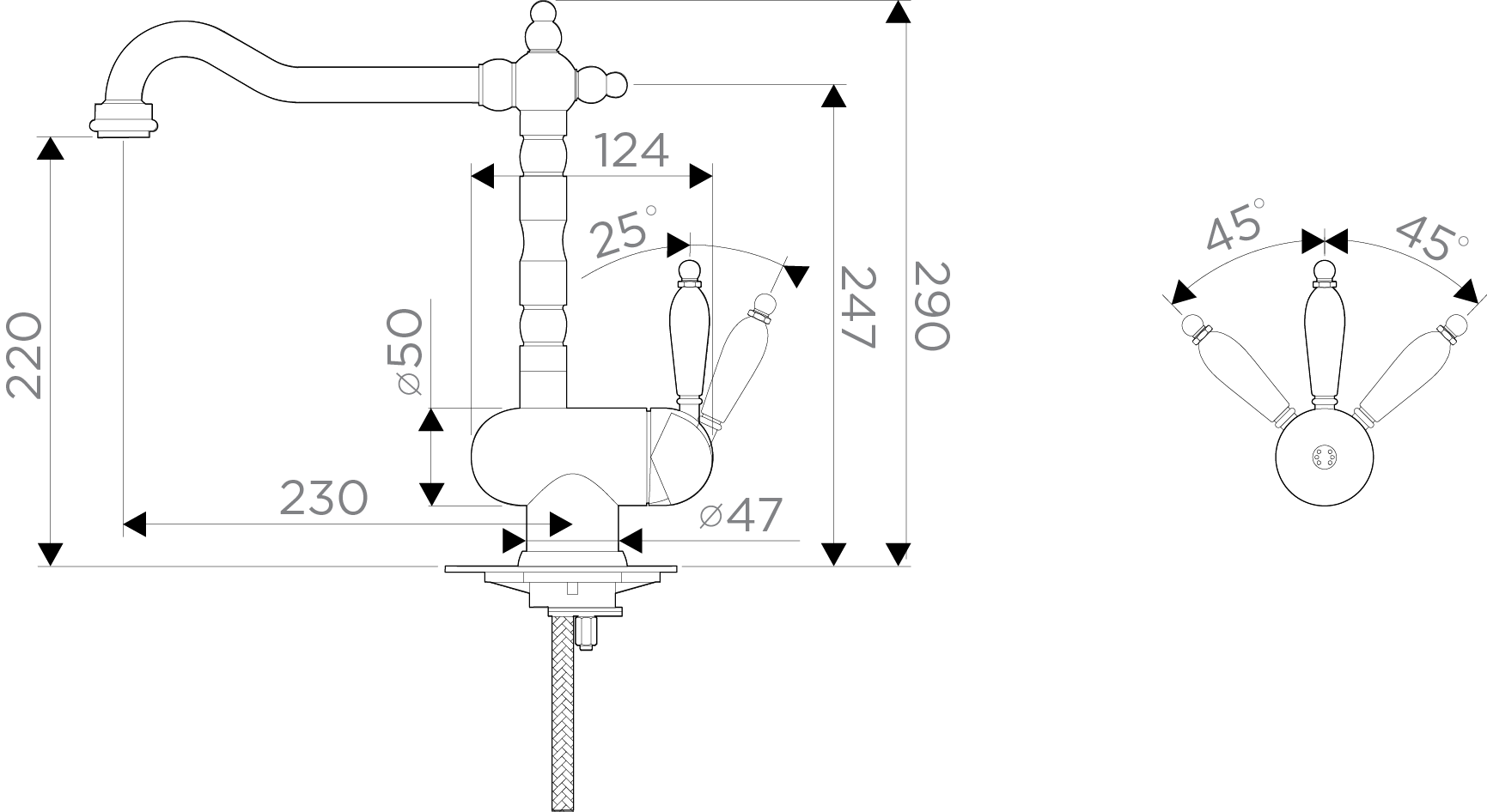 • Высота смесителя: