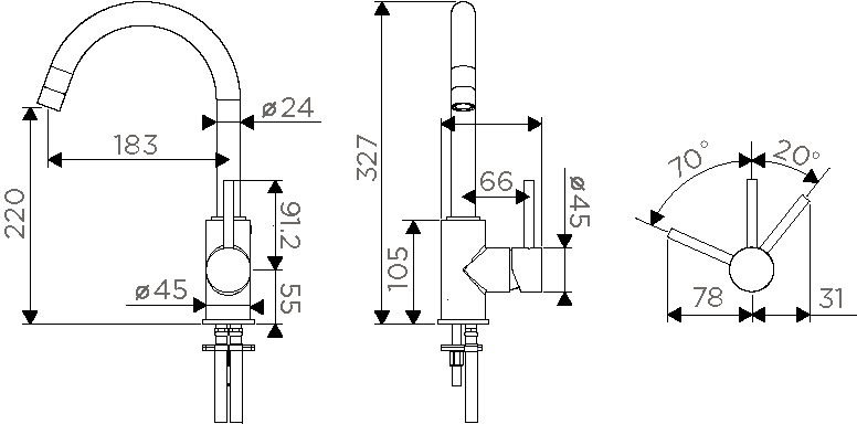 • Высота смесителя: