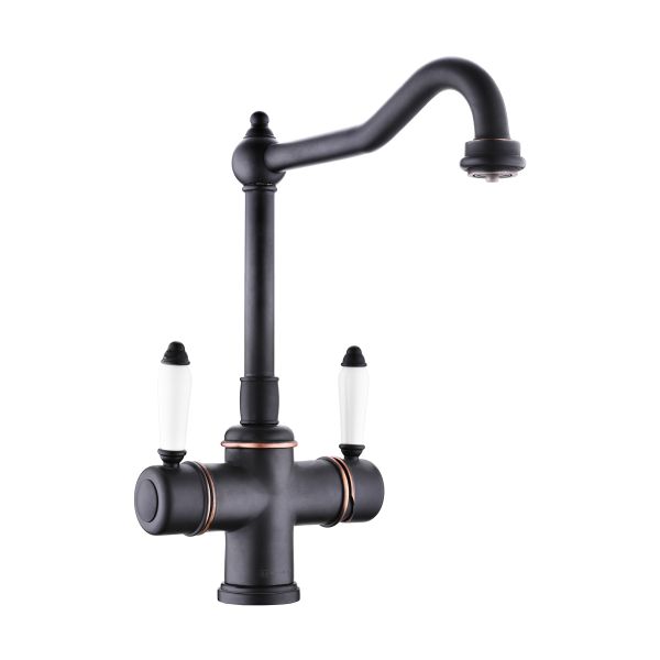 • Классический дизайн и удобство использования, благодаря высокому изливу; • Цвет: 011.Античная Бронза; • Технология PURE LIFE: Подключение фильтра для очистки воды. Фильтрованная вода подается по отдельной трубке и не смешивается с водопроводной водой; • Высококачественная латунь сохранит воду чистой и здоровой; • Аэратор произведен из пластика, благодаря чему на нем никогда не появится известкового налета и ржавчины; • Коробка внутри проложена поролоном, который обеспечит сохранность изделия при транспортировке; • Полный набор креплений, соединительных шлангов, подробная инструкция и гарантийный талон в комплекте.