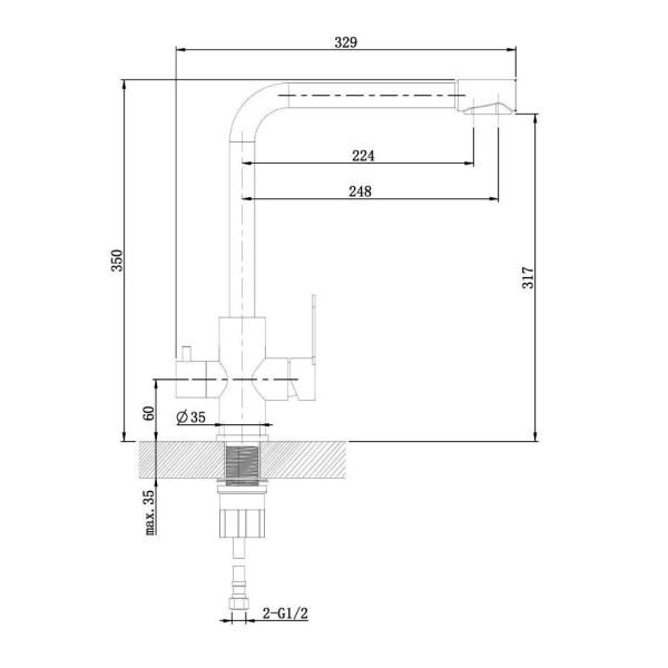 Смеситель для кухни (с керамическим картриджем) сделает кухню удобной и функциональной. Он изготовлен из латуни с эффектным покрытием матового никелевого цвета, нанесенным методом вакуумного напыления. На поверхности изделия незаметны разводы от высохшей воды и отпечатки пальцев. Два отдельных канала исключают смешивание водопроводной и фильтрованной воды. Высокий поворотный излив с аэратором обеспечивает комфорт при мытье посуды и предотвращает разбрызгивание.