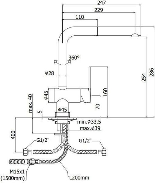 • Высота смесителя: