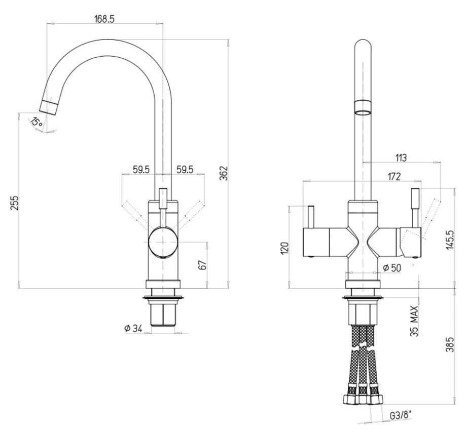 • Высота смесителя: