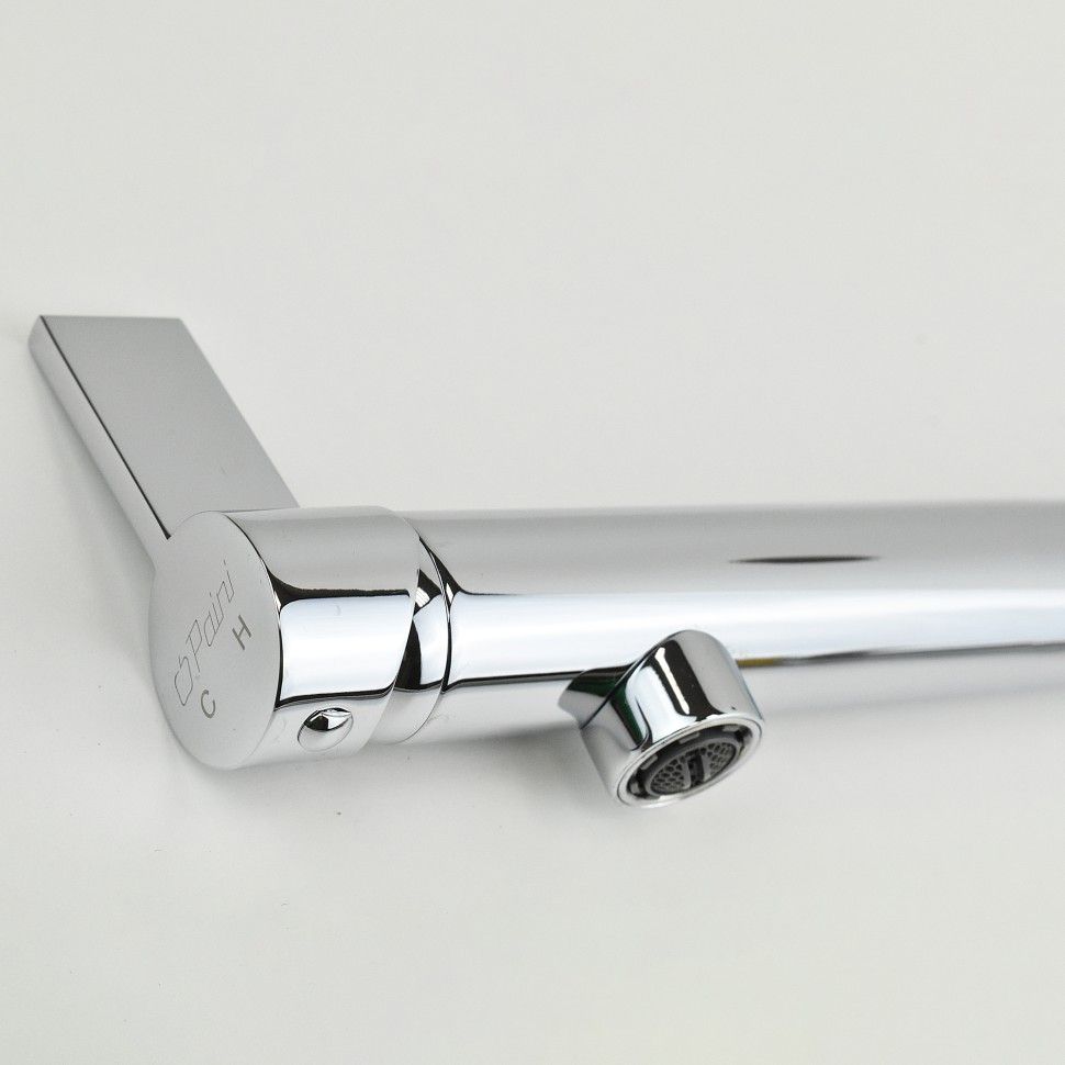 Смеситель для кухни коллекции CUCINA от итальянского бренда PAINI с необычной изогнутой формой станет стильным аксессуаром на Вашей кухне. Удобная ручка сверху на изливе обеспечивает легкость, комфорт и эффективность в использовании. Смеситель удобно закрывать и открывать его даже если у вас запачканные руки, просто поверните рычаг тыльной стороной ладони или локтем.Оригинальный рычаг управленияЛовите удивленные взгляды ваших друзей - такой красивой и одновременно удобной ручки они ещё не видели!Европейское качествоСделано в Италии. Гарантия – 5 лет.Технологии гарантируют долгий срок службыАэратор Neoperl наполняет поток воды кислородом, увеличивает напор, экономя воду. Одно движение пальцем для очистки сеточки. Nuovo Galatron - керамический картридж – основа, необходимая для долгой работы смесителя.Легкая уборкаМыльная губка и сухая тряпочка – все, что нужно для уборки. Несколько движений – и ваш смеситель от "Паини" как новый.