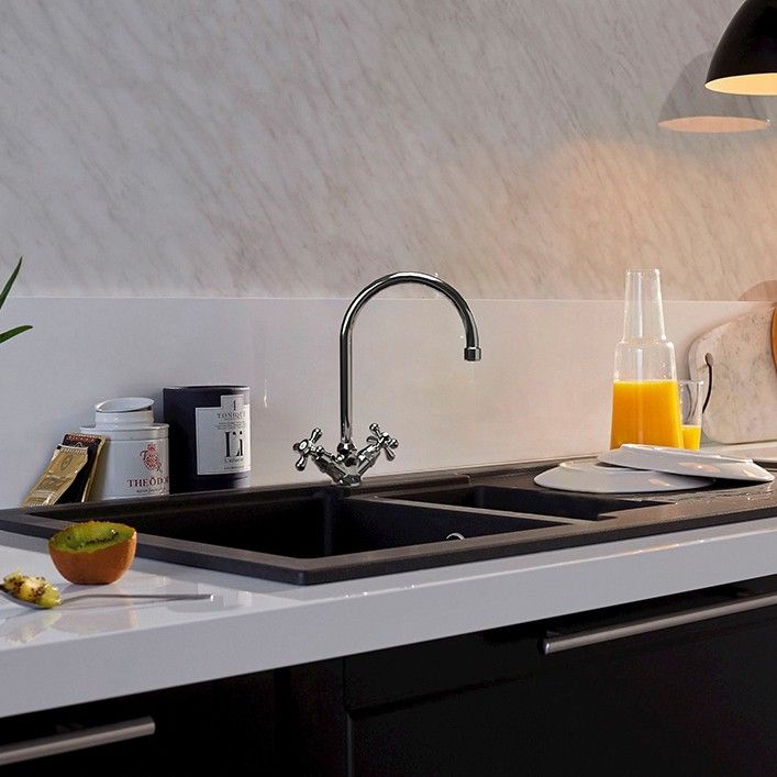 • Благодаря высокому корпусу и поворотному изливу идеально подходит для кухни.