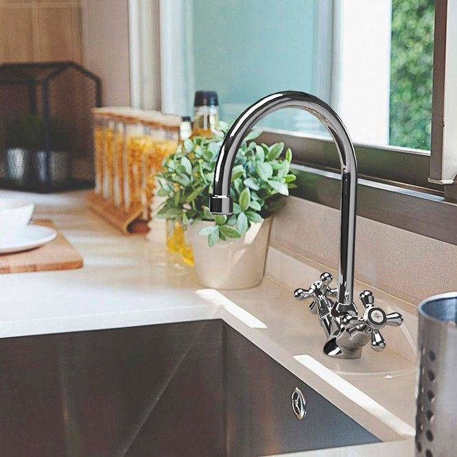 Двухвентильный смеситель для кухни LIBERTY от итальянской фабрики PAINI сочетает в себе традиционную форму с ретро-акцентами. Его высокий корпус и поворотный излив позволяют менять направление потока воды, наполнять глубокую посуду. Традиционная форма и винтажные акценты в дизайне LIBERTY органично комбинируются со стилями классика, модерн или по-новому раскроют интерьер в стиле фьюжн.