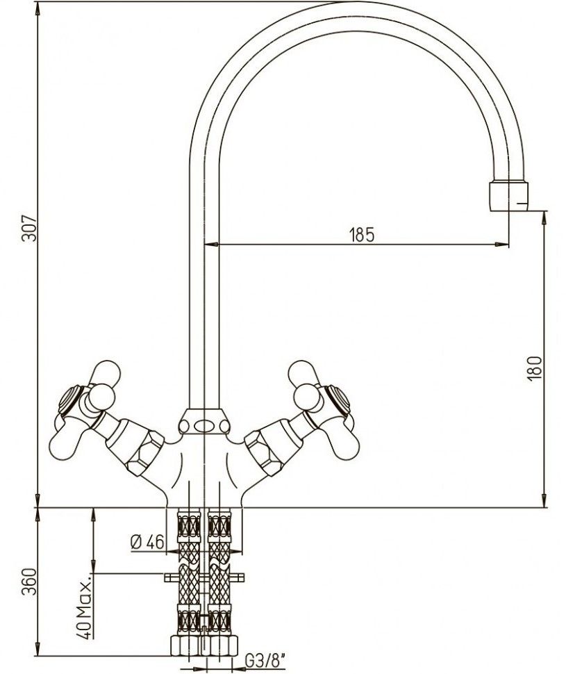 • Высота смесителя: