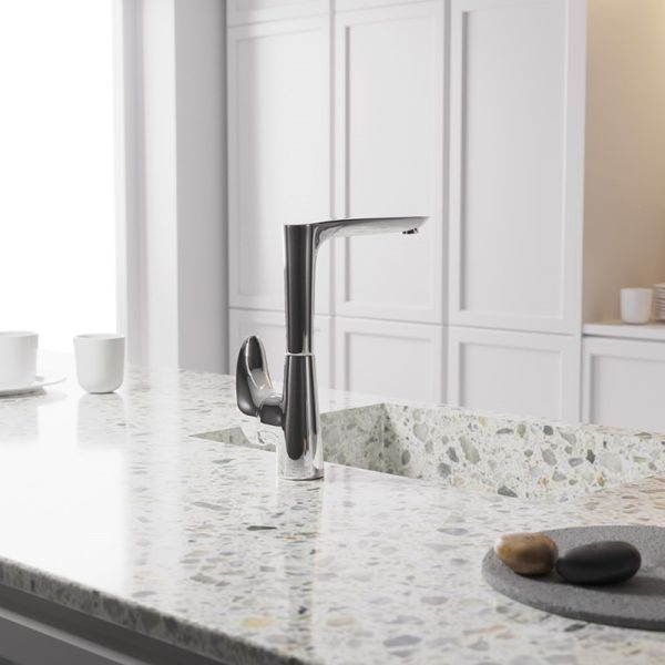- Благодаря высокому корпусу и поворотному изливу идеально подходит для кухни.