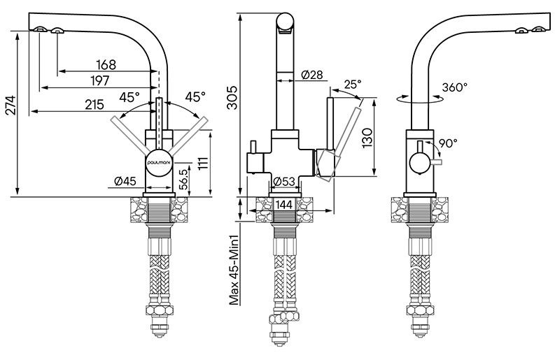 • Высота смесителя: