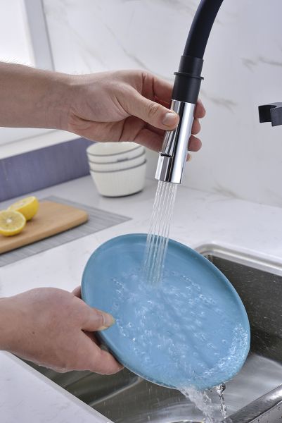 Смеситель для кухни, с гибким изливом, артикул Ha214021-CRИзготовлен из высококачественной латуни, которая отвечает высочайшим европейским стандартам качества, не содержит свинца, не разрушается со временем и безопасна для здоровья.