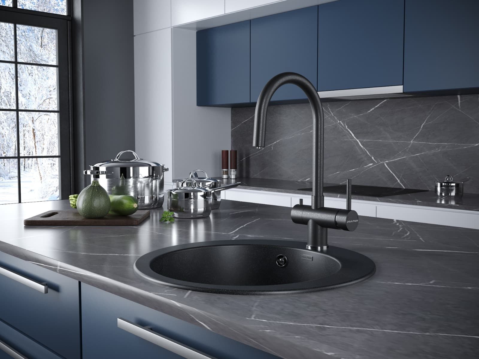 Смеситель для кухни Paulmark Heller He213218-418 чёрный металлик купить