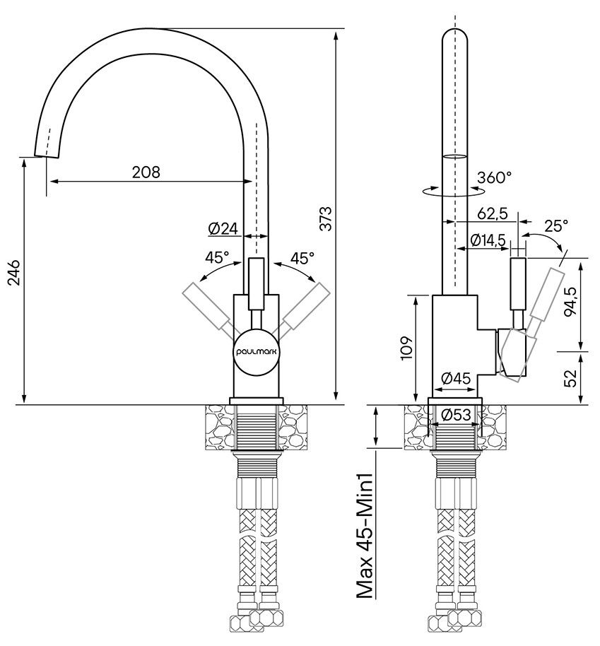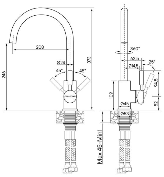 Смеситель для кухни Paulmark Holstein Ho212063-418 чёрный металлик