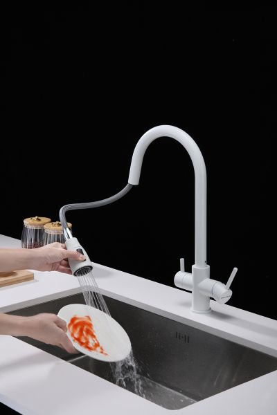 Смеситель под фильтрованную воду с выдвижным шлангом, артикул La214212-431Изготовлен из высококачественной латуни, которая отвечает высочайшим европейским стандартам качества, не содержит свинца, не разрушается со временем и безопасна для здоровья.Вытяжной шланг