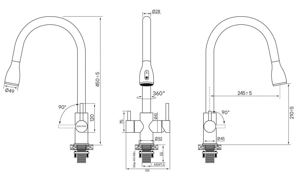 Смеситель для кухни Paulmark Lange La214212-G золото