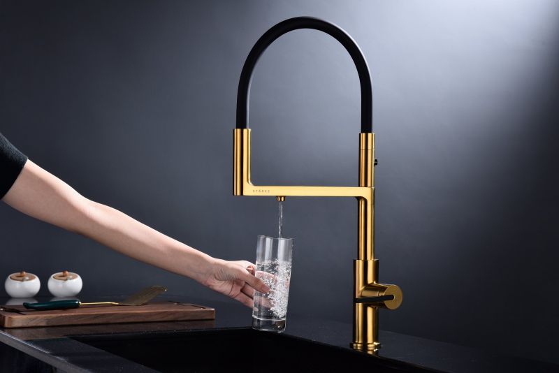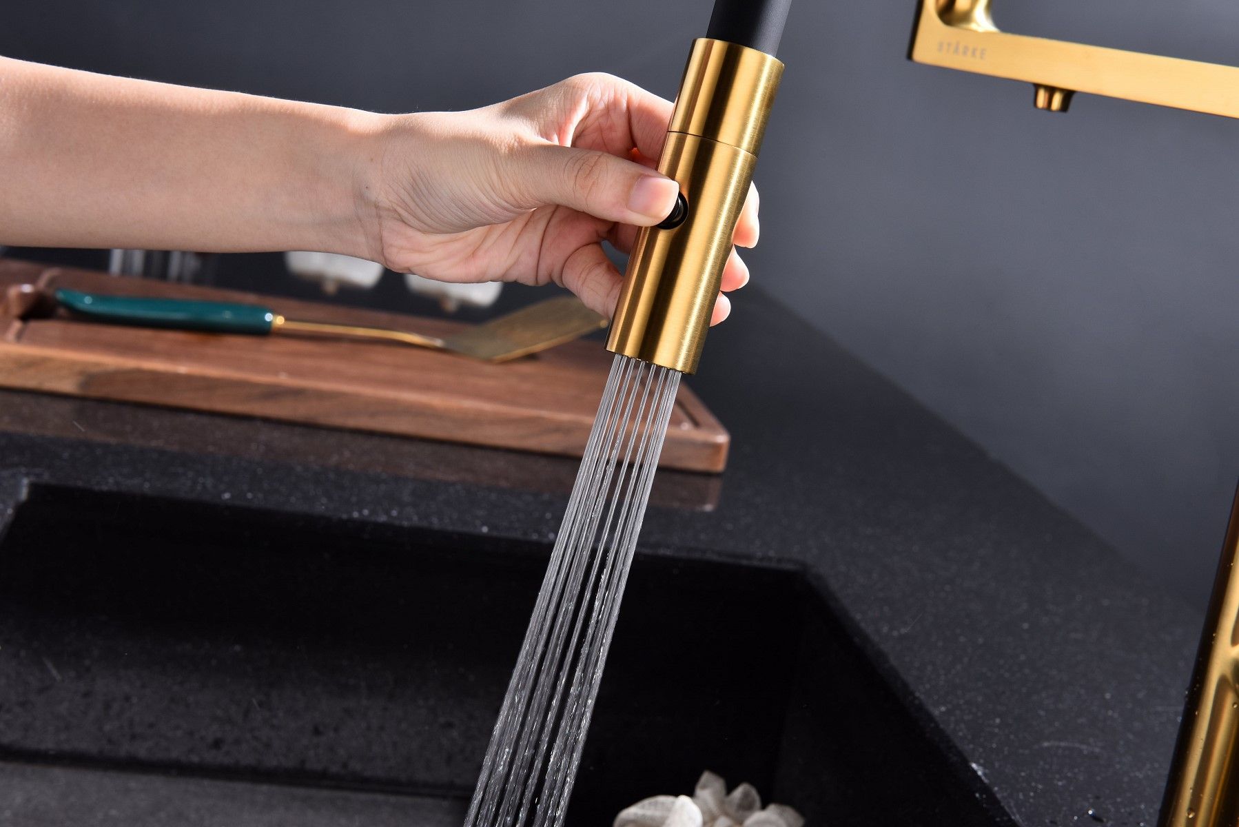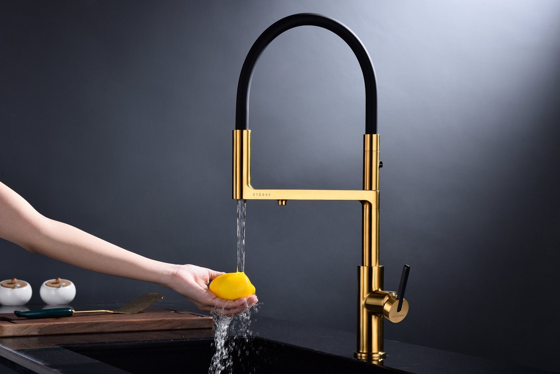 Смеситель для кухни, с гибким изливом, артикул To213402-BGИзготовлен из высококачественной латуни, которая отвечает высочайшим европейским стандартам качества, не содержит свинца, не разрушается со временем и безопасна для здоровья.Гибкая подводка 40 см;