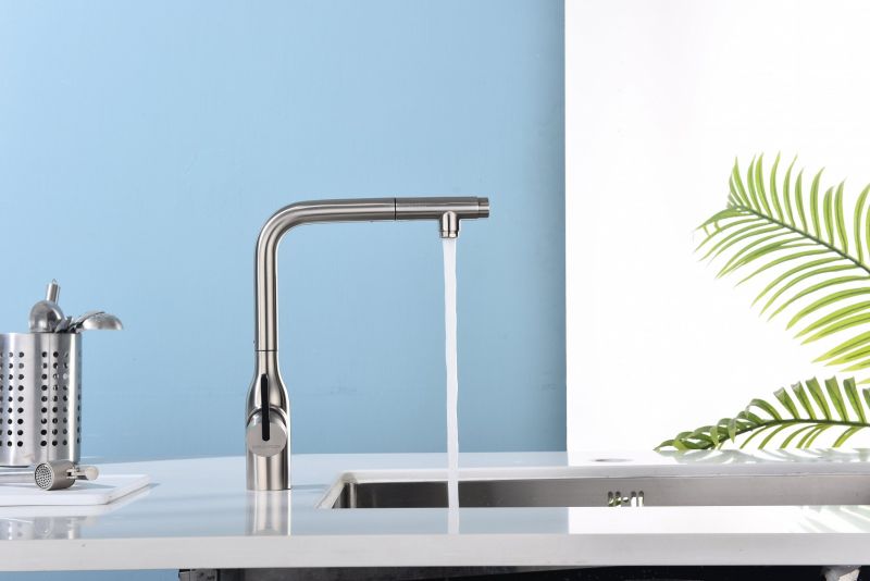 Высокий Г-образный излив с функцией вращения на 360 градусов обеспечивает удобство использования. Выдвижная часть излива способна обеспечить максимально комфортную эксплуатацию и экономный расход воды.